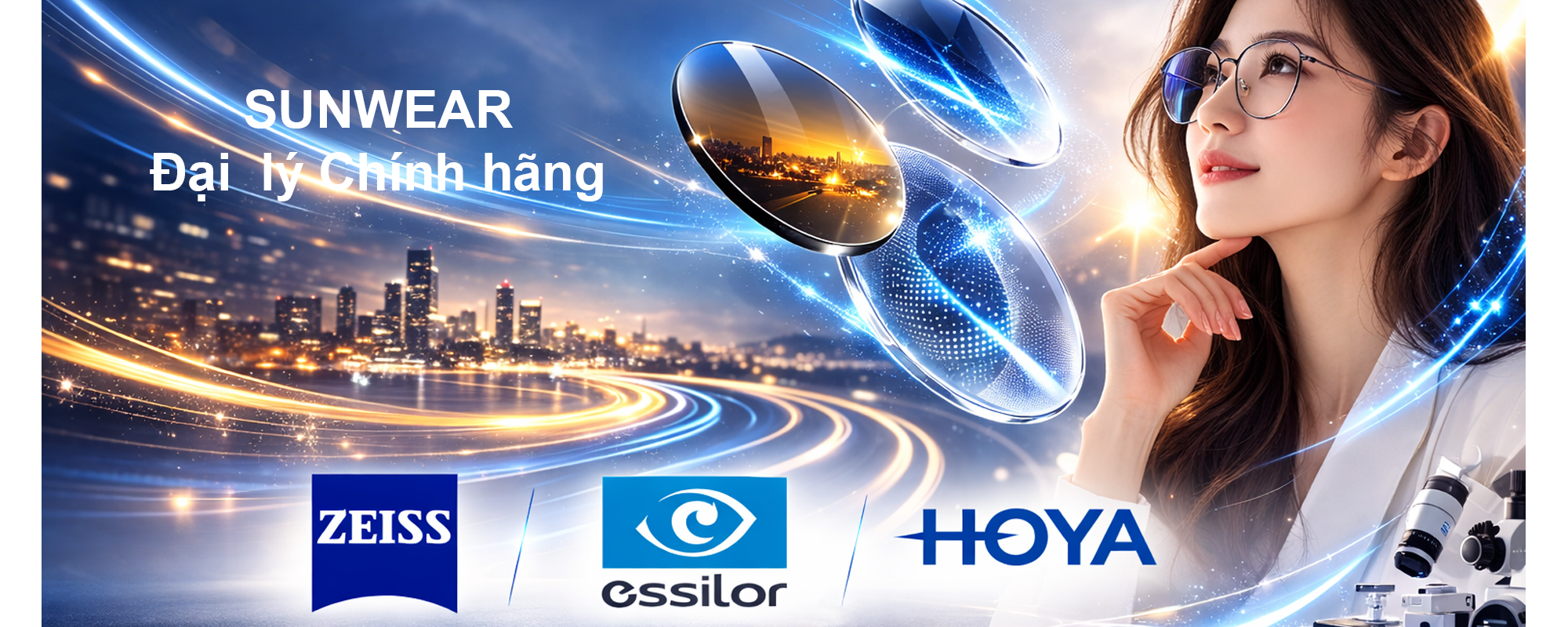Sunwear – Đại lý độc quyền chính thức đầy đủ thương hiệu tròng kính thấu kính uy tín toàn cầu: Zeiss, Essilor và Hoya,…